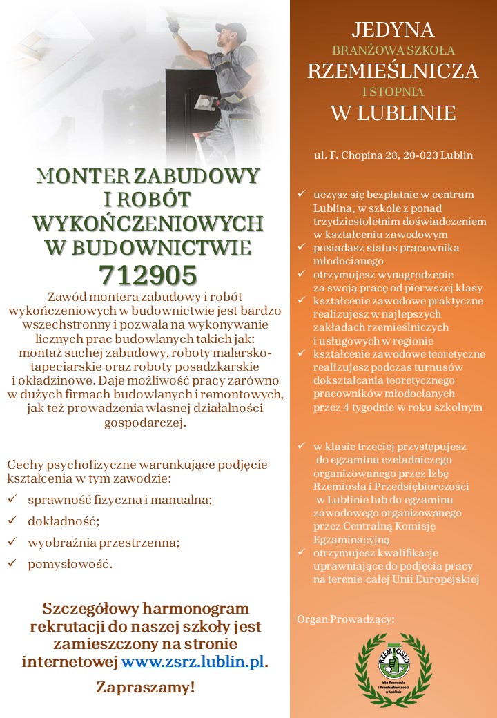 | Monter zabudowy i robót wykończeniowych w budownictwie | link | link | link |