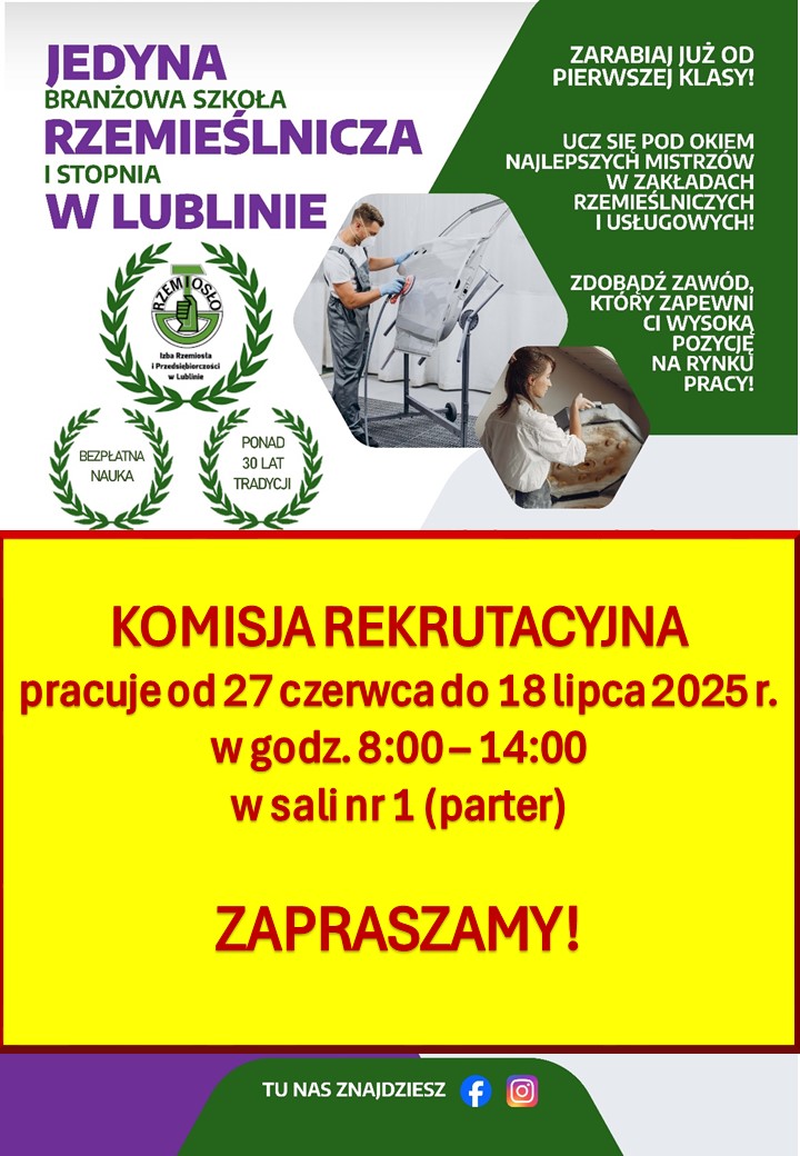 Regulamin rekrutacji do klas pierwszych w Branżowej Szkole Rzemieślniczej I stopnia na rok szkolny 2025/2026